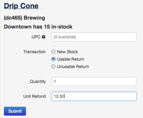 In this case, you can specify a quantity and a Unit Refund - how much you refunded and a per item basis. When you log a usable return, your in-stock count is increased by the Quantity. Unusable returns do not change your in-stock count. In both cases, your Average Cost remains the same. The Inventory Transaction Report will show your total amount of Usable and Unusable returns separately from your sales profit for use in your financial calculations.