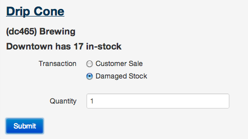 Hopefully, you won't find any. But, if you do, tracking damaged stock is simple. From the Remove Inventory screen, pick 'Damaged Stock' and enter the number of units: