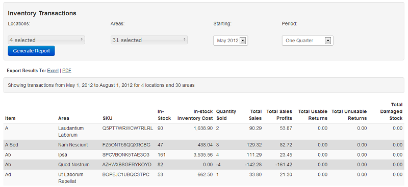 Not to mention we have reporting to track your inventory levels and transactions over a specified period of time (that can be downloaded to a spreadsheet or PDF!):